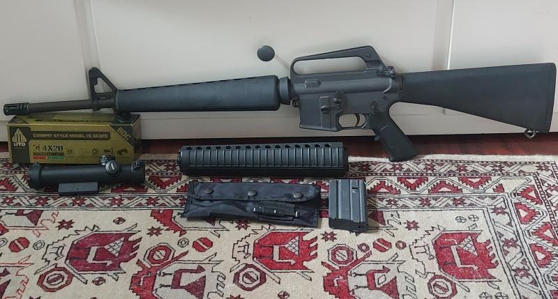 Colt Ar15 A2 Sporter II calibre 222 con kit de limpieza, 2 guardamanos uno el versión Vietnam Original y otro el moderno, cargador versión Vietnam.