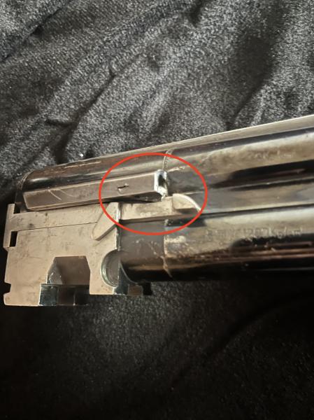 Tengo una Lanber superpuesta que uso para el tiro al plato, y hace unos días al sacar el guardamanos para desmontarla, se me caió esta piezecita