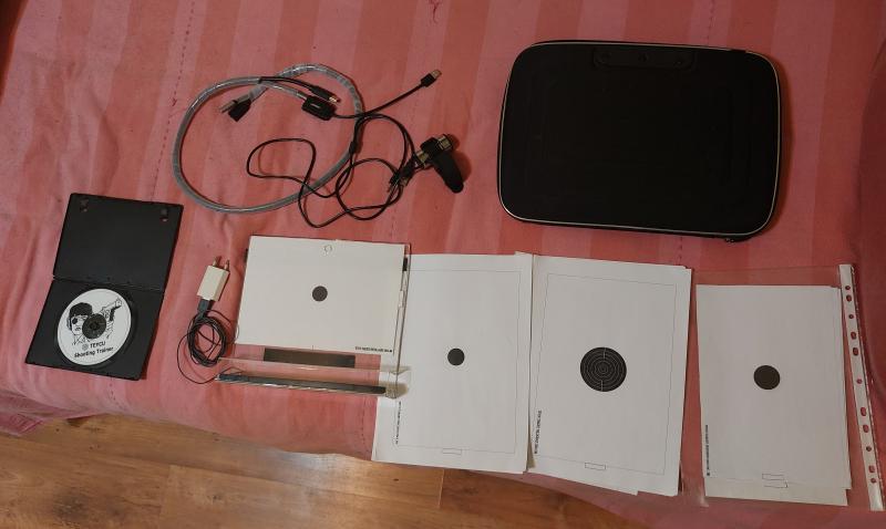 Incluye todo el material original, el CD con el SW de conexión, la sujeción al arma, la pantalla, dianas de diferentes distancias (de 4 a 10m) todo en su maletín original.
