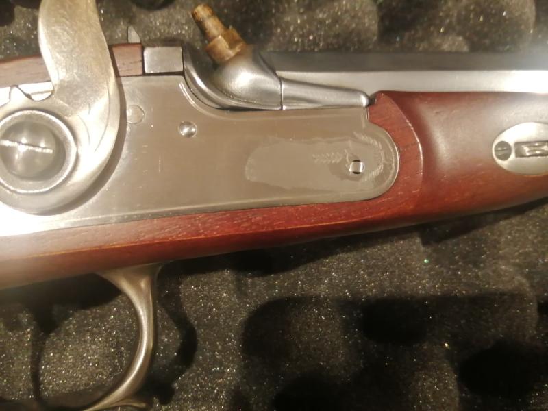 Hola, vendo por no usar pistola de percusión Le Page de Pedersoli cal.44. El arma está en perfecto estado y sólo ha disparado 200 disparos desde que la adquirí nueva en 2011. Tiene una ligera decoloración en la pletina. Por lo demás está perfecta.