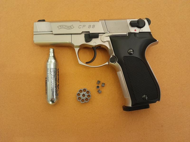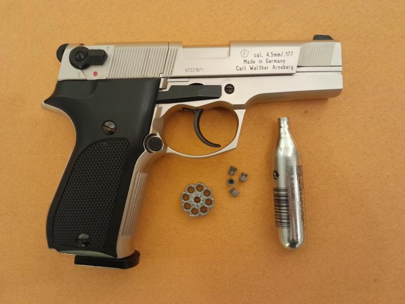 La vendo por que mis hijos ya no la utilizan. Le he hecho cambiar la válvula y un repaso general en la armería. Está en perfectas condiciones de uso y no tiene ni un rasguño. Es una réplica de la Walther CP. Su potencia máxima es de 3,5 julios. Precio incluido transporte 185 euros