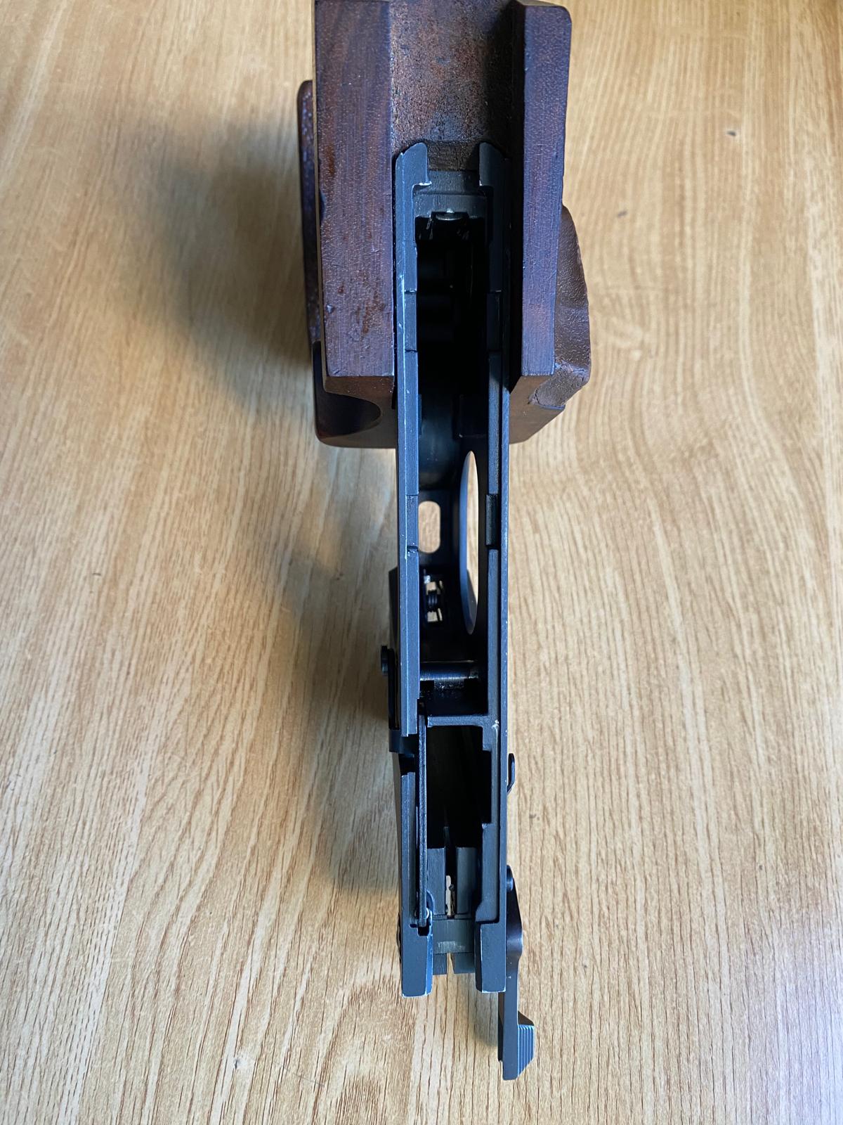 Está impecablemente bien cuidada y ajustada a la perfección. El arma viene con todo lo que se ve en las fotos, osea, que esta más que completa ya que tiene también un disparador moderno además del que monta la pistola (también moderno) y una cacha Morini talla M.