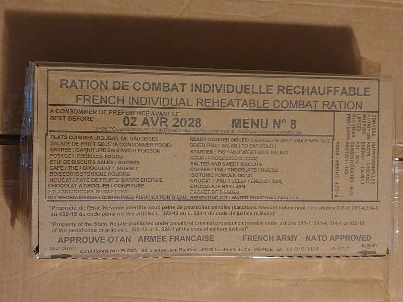 Re: EPA Pack Unipersonal MRE Ejército Francés 24h Varios Menú Fecha 2028