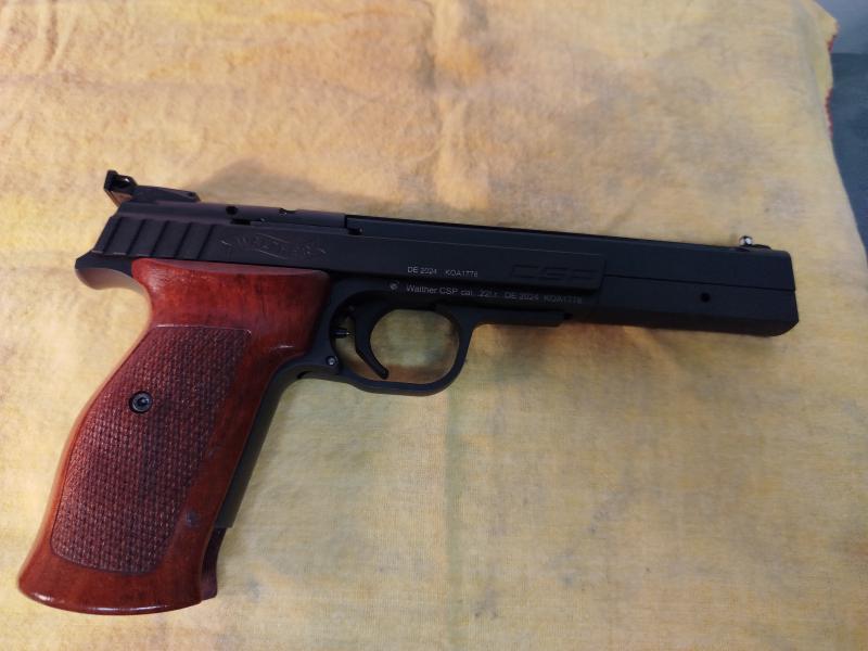 Vendo pistola Walther CSP Dynamic, calibre 22 LR, comprada nueva en Febrero de este año en armeria Parriego, solo a tirado tres cajas de munición, está nueva con su estuche, manual y factura, mas contrapeso de 100 gr, la vendo por cese de afición.