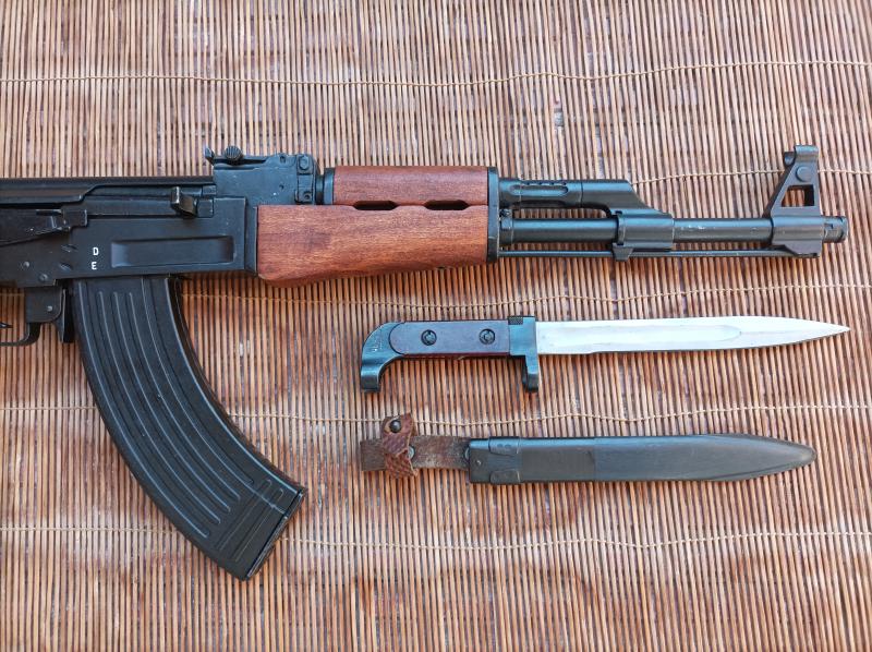 Se vende con una bayoneta búlgara original de AK 47 en perfecto estado, se puede colocar la bayoneta original en la réplica, el efecto es genial como podéis ver.