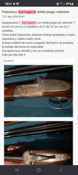 Buenas...si estás por Santander o Bilbao, podías echar un vistazo a una superpuesta, creo que es Franchi, que me dio un familiar sin ningún uso. A mí la paralela que tiene el cañón más pequeño me gusta. La verdad es que no soy cazador ya que hago precisión. Ya me dirás