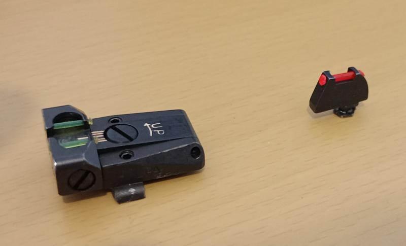 También incluyo un juego de miras ópticas ajustables que venían con el arma cuando la adquirí y que nunca usé porque estorbaban para el porte oculto.
