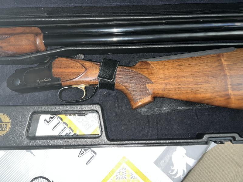 Vendo espectacular escopeta superpuesta de la prestigiosa marca española Lanber, modelo Superlanber. El arma se encuentra en un estado impecable, completamente nueva y sin uso. No ha llegado a disparar ni un solo cartucho, ha estado guardada como pieza de colección.