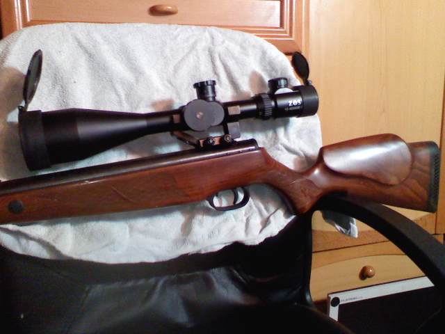 en la foto que pongo del mio lleba montado un zos 10-40x60, con el parasol no se podria utilizar porque no deja quebrar el cañon, es un visor con un tamaño impresionante.