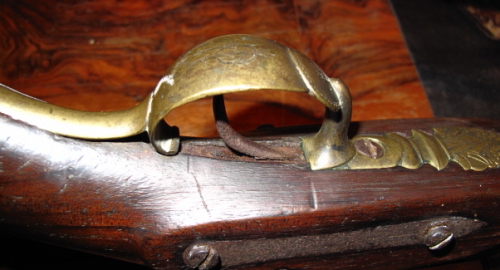 Intento poner unas fotos del guardamonte que, intuyo, es la pieza que protege "el gatillo". Se observan en el unas iniciales punzonadas.