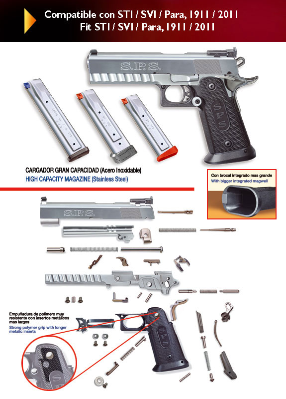 FENRIS escribió:No es gran cosa, pero menos es nada. Con esta imagen y la relación de piezas de la web de SPS, que viene muy bien detallada, igual te apañas. Tambien está muy bien el catálogo. Además creo que muchas piezas son compatibles con otros modelos 1.911 de otras marcas, por lo que supongo que el despiece sea similar al de una STI por ejemplo.