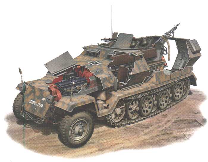 Sdkfz 251/17 - Schützenpanzerwagen (2cm FlaK38). Con 4 cañones antiaéreos FlaK38.