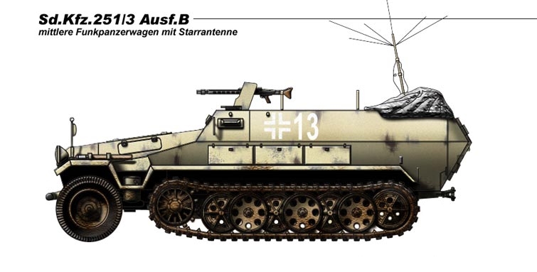 De la versión 251/3 Ausf B. existia tambien la version mando con antena de parilla tubular como la version anterior.