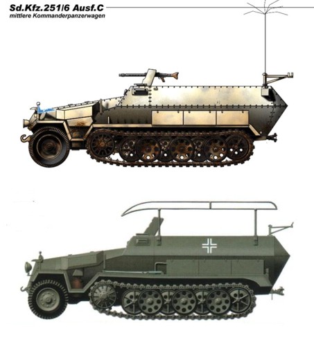 12.- Sd.Kfz 251-6 Ausf.C en version de linea y de mando (la inferior)