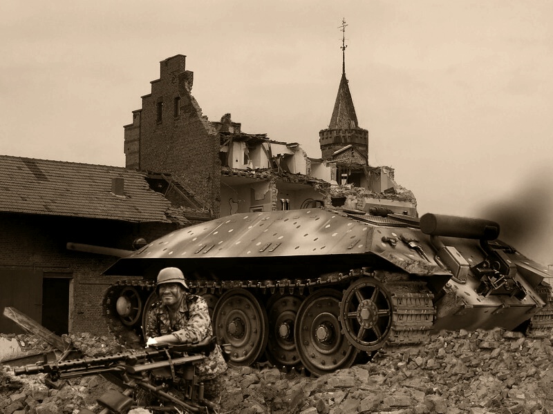 La presencia de los Jagdtiger II (Panzerjagerwagen E90) con cañón 150mm KwK permite que la infantería alemana pueda incluso tomarse un descanso entre combates