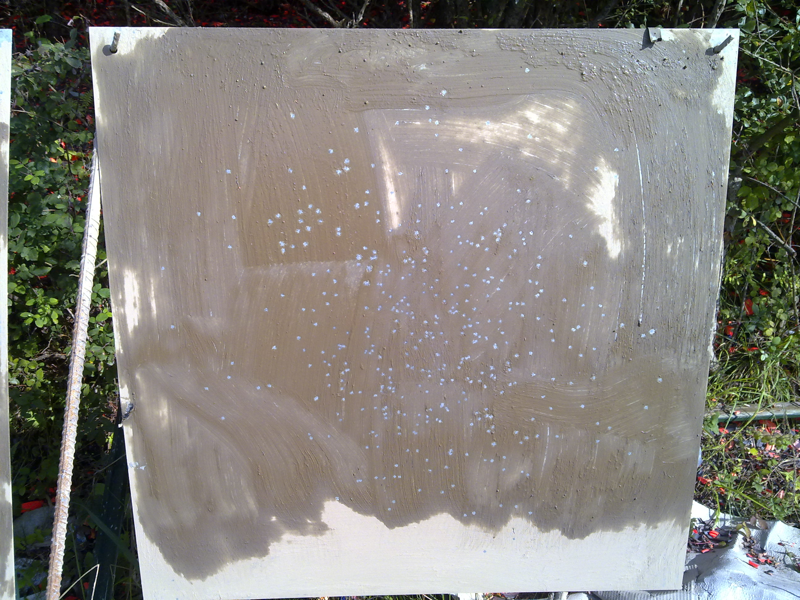 En mi caso están hechas en el Campo de Tiro San Marcial de Irún donde hay un lugar acondicionado para ello. Como tú bien dices hay unas planchas metálicas, un cepillo y barro para "pintarlas".