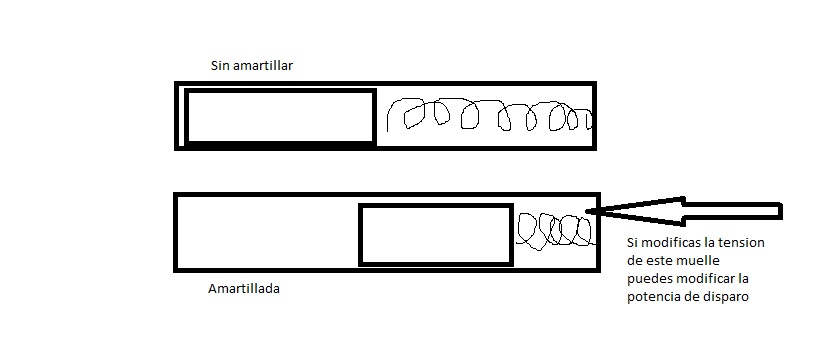 Si modificas la tension del muelle puedes aumentar y disminuir la potencia de disparo.