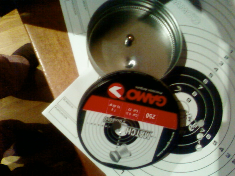 Aquí adjunto foto de una lata de balines Gamo agujereada por un Rocket del 5,5, disparado por mi HW-45 (7,5 julios) a 8 metros.