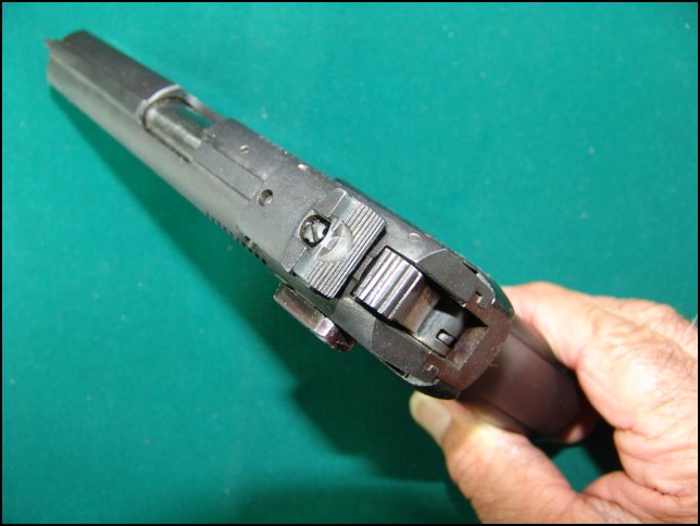 de todas las fotos que he visto de la version de 9 mm , no he visto niguna del detalle de la corredera con el seguro de aleta en ambos lados , y se de buena tinta que hubo un modelo que lo llevaba tambien en el lado derecho