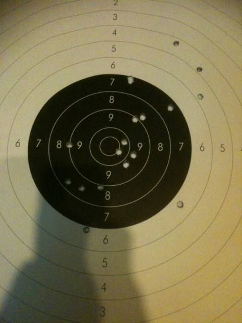 Aqui os dejo unas fotografias de las agrupaciones la diana que tiene los del centro y los 2 -9 los 9 fueron con el remington 7400 y sin visor a 50 mst y en la parte del 10 hay 4 impactos con el CZ 550 y hornady 165gr SST. La otra diana es la del 300.