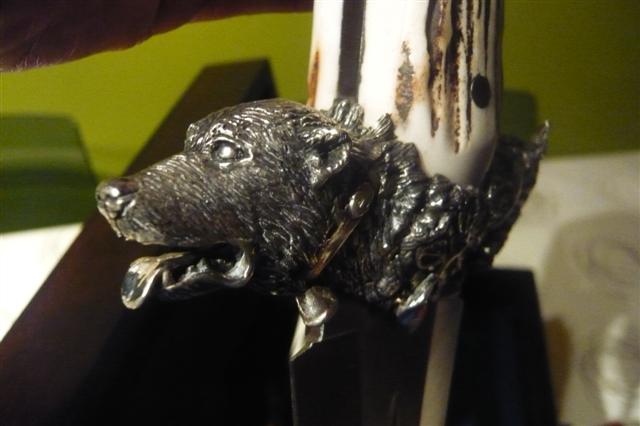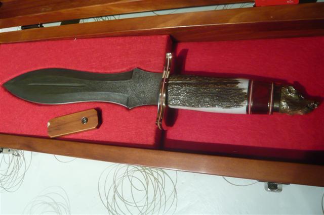 buenas tardes,aqui os presento dos cuchillos de la casa muela,son dos cuchillos para el remate,que obviamente no voy a usar,solo exponer en vitrina.uno es el muela lupus, en acero de damasco,y mango en asta de ciervo.el otro de edicion limitada a 500 unidades,es el podenquero.este tambien en asta de ciervo,la guarda y el pomo estan labrados en plata.espero que os gusten.un saludo