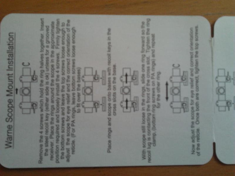 "With scope still lose in the rings, slide one side forward so the recoil lug is contacting the front of the cross slot. Tighten the ring clamp,and repeat for the other ring".