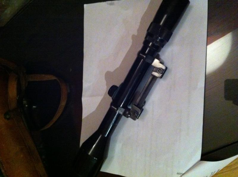 se usó en una carabina del 22, no se si se sabra algo más de él, y si será valido para un 222, viene en una funda muy bonita de cuero, y los protectores de la lentes son de cuero tambien