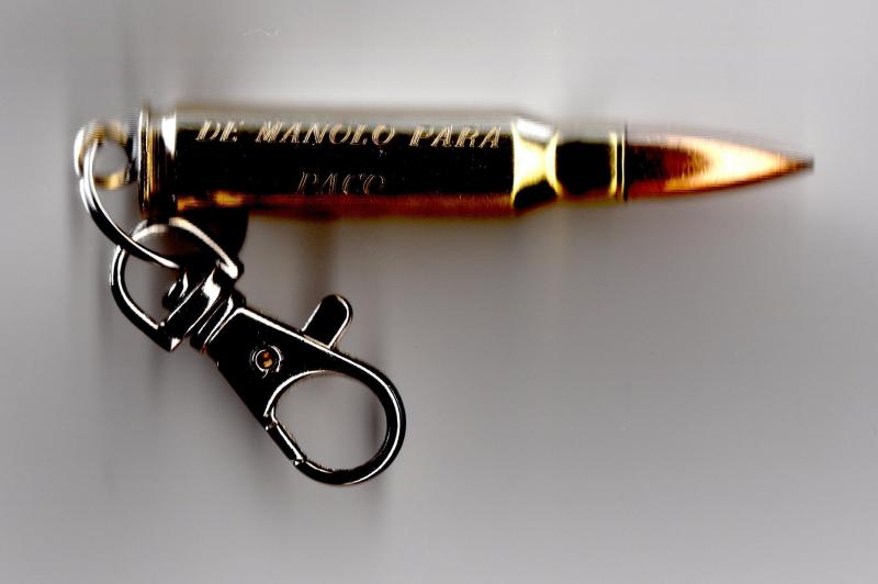 Como puedes ver el llavero en si no tiene mucha historia. El gravado se lo hice con un pantografo que no es otra cosa que lo que utilizan los joyeros para gravar en joyas. Logicamente estos aparatos no los tiene cualquiera pero si lo que quieres es hacer una sola bala cualquier joyero no te pondra mucha pega y no creo que te cobre mas de 8 o 10 €. Si te cobran mas ya te estaran timando. Este gravado no lleva mas de 15 minutos.