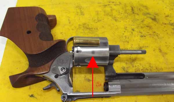 En la foto pongo un cartucho del 38Sp WC, para que se vea a que altura esta la mancha.