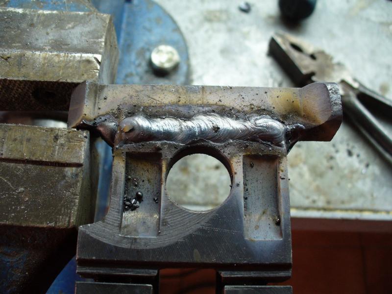 solución al primer problema: recrecer con soldadura eléctrica las patillas en cuestión y después limar para ajustar. Para ello he usado un colimador láser y con una lima fina se han ido rebajando las patillas hasta que casi ha quedado centrado. El ajuste final será en galería de tiro cuando se pueda.