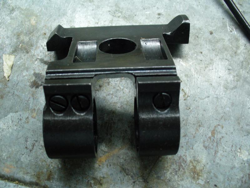 Para montar el soporte he procedido a desmontar el arma, y con ayuda de un nivel y una escuadra lo he sujetado con un gato, de manera que el soporte estuviera lo más perpendicular posible a la rasante del alza. Una vez hecho esto con una broca de 4,9mm los taladros correspondientes a los pasadores (son de 5 mm) procurando que queden lo más perpendicular posible al cañon.
