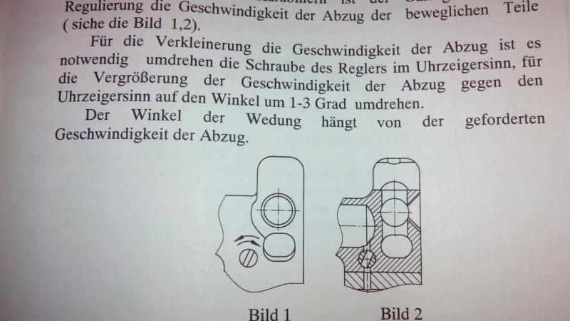 Para la reducción de la tasa de descuento es necesario para girar el tornillo de la vuelta del regulador hacia la derecha para el engrosamiento de la velocidad de la atracción hacia la izquierda al ángulo de 1-3 grados.