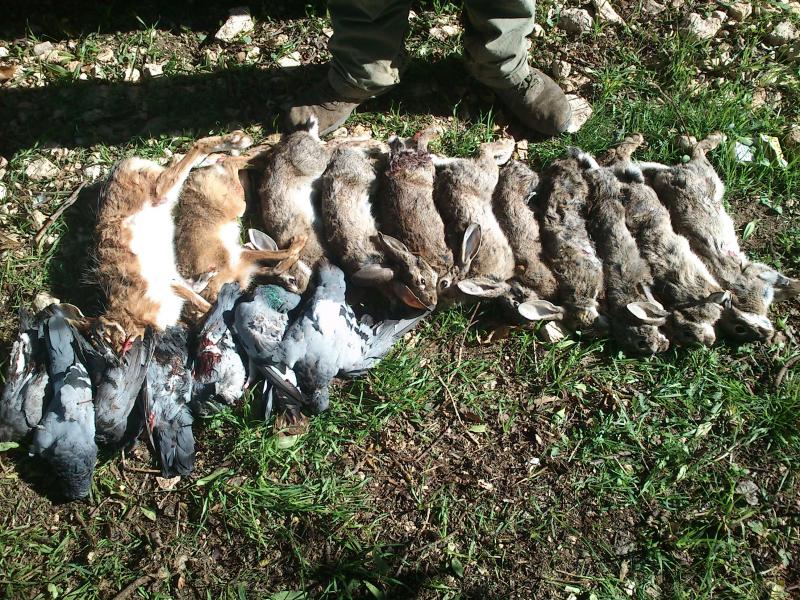 Bueno, de estos "Trofeos" de menor tengo algunos. Ire subiendo: Este es de un dia en la finca de un amigo en la que hay cientos de palomas que se comen lo que planta. Creo que hay unas 30 y en la esquina derecha inferior hay una polla de agua hembra que cazamos en un humedal antes de ir a la finca.