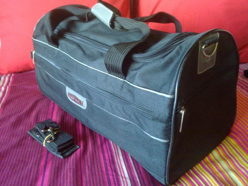 Bolso de viaje azul con 4 compartimentos con cremallera, asas para transporte y cinta para colgar del hombro. Perfecto estado, gran capacidad.