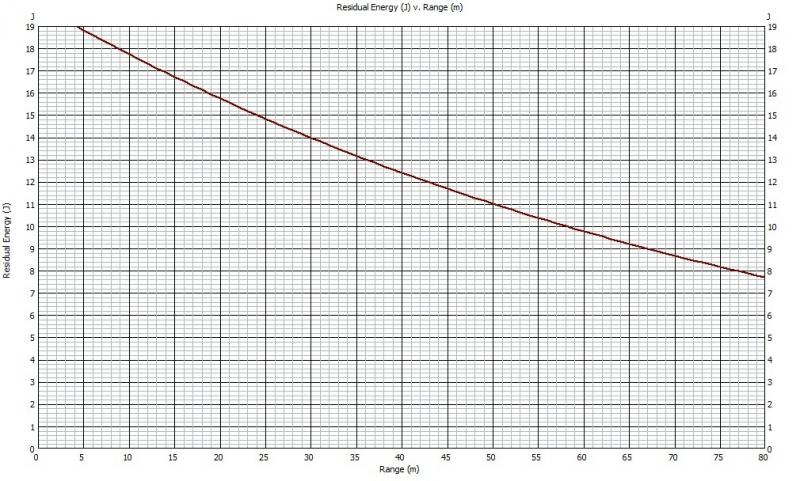 Energía retenida. 20J de Eo, 80 mts de rango, calibre 4,5 balín jsb exact