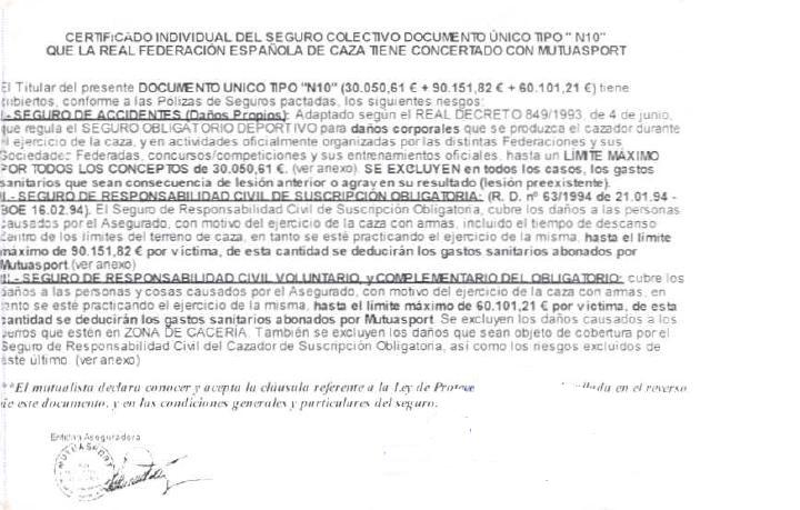 y si para cazar te hace falta un seguro , a lo que tu te refieres tiene que ser la licencia FEDERATIVA la cual ya lleva el seguro incluido y te vale para cazar y tirar en cancha .