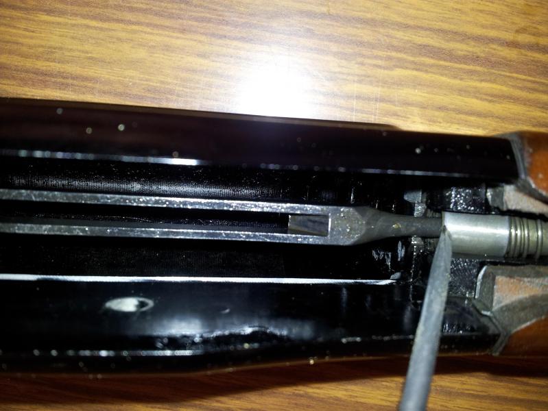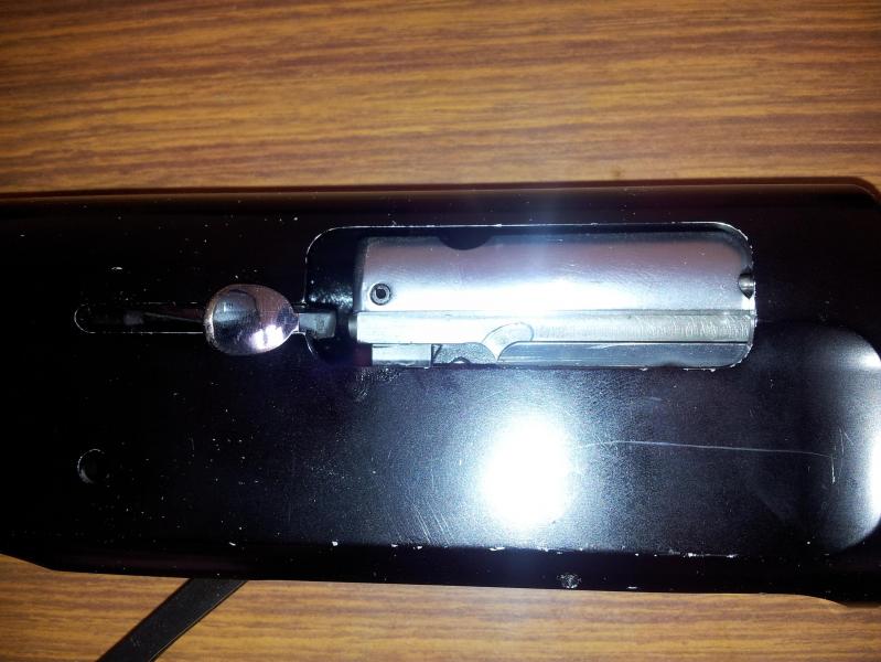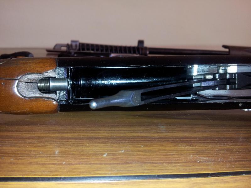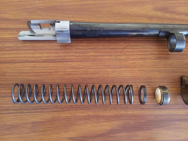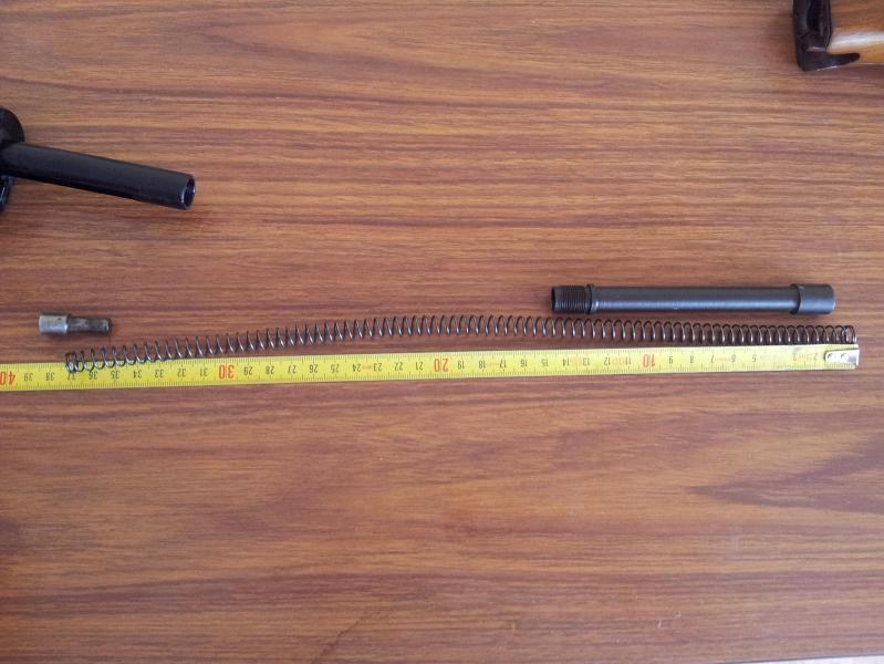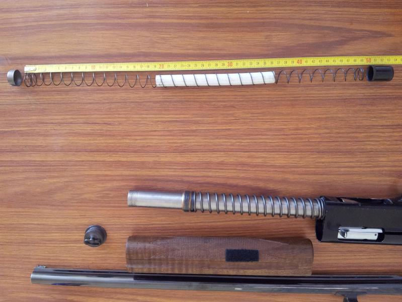 el tubo blanco que va dentro del muelle, es el tope casero para dos cartuchos, como manda la legislacion, digo casero, porque no lo tenia y lo hice con un trozo de tubo de esos de pvc que entraba por dentro del muelle, mide 17 cm, y al ir por dentro del muelle, no le añade presion.