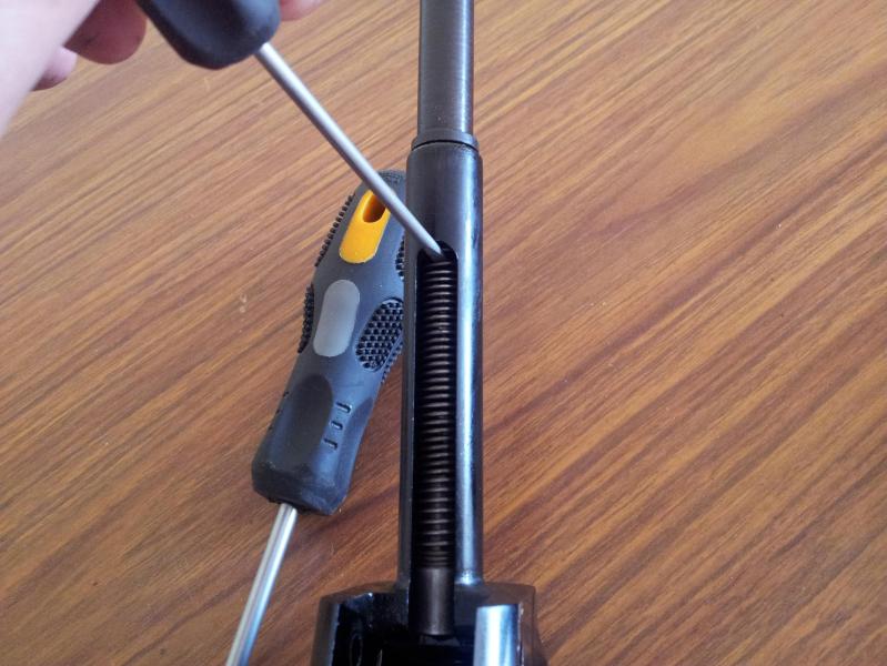 ahora vamos a desmontar el muelle del deposito, para ello, quitamos con cuidado el tapon del extremo,