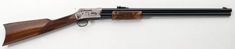 En 44-40 se hicieron dos versiones. El RIFLE, con 66 cms. de cañón y depósito para 15 cartuchos y la CARABINA, con 51 cms. de cañón y depósito para 12 cartuchos.