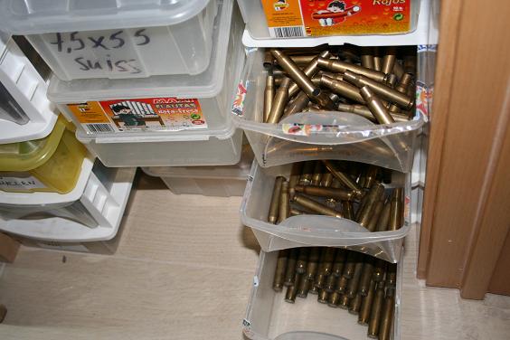 Bueno. Lo primero es la vaina. O se la compra uno nueva o reutiliza una ya disparada. Si se va a lo nuevo, yo siempre recomiendo que sea bueno: Lapua, Norma, Remington entra en lo suficientemente bueno, etc. Duran bastante y las que se pierden cazando son realmente pocas. Si se reutilizan, se acaba teniendo cajones de vainas que te da la gente o que exiges que se recojan del monte y acaban en tu mochila. Eso es positivo porque te da la ocasión de elegir la que te convenga; no extrañe ésto: en realidad sólo uso una cuarta parte o así de las que tengo en los cajones y las demás las descarto por diferentes motivos.