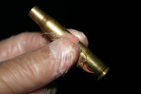 Por cierto, con el recalibrado FL hay que tener en cuenta la relación entre las medidas oficiales y la recámara. Las primeras las vemos enseguida cuando bajamos el pistón, pero la segunda no salvo que hagamos un molde de cerrosafe. En muchos casos ocurre que una vaina se ve reducida en longitud demasiado para lo larga que va a ser la recámara, con lo que se ha creado un headspace excesivo. El resultado va a ser que la vaina tiende a romperse por un anillo de debilitamiento que se hace como a un centímetro o centímetro y medio de la ranura de extracción, justo por encima de la copa. La secuencia compresión- expansión le acorta la vida.