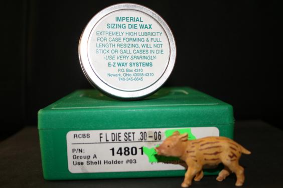 Para recalibrar uso Imperial Sizing Die Wax, que en su día fue el invento del siglo. Es un súperlubricante para la función de recalibrado que se pone poquísimo, con lo que cada latita de esas dura dos vidas y media, y se retira con papel, como el Aladdin. Y no es untuoso. Tienen otro producto para lo mismo a base de grafito; recuerdo de chaval que las mujeres lubricaban las cremalleras duras con un lápiz, en mi casa de carpintero porque mi abuelo era ebanista, o sea que ya sabían que el grafito es lubricante. Hornady también tiene otra cera parecida.