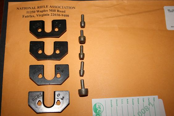 El último elemento es el holder. En casi todos lo modelos de trimmers se hace presión con la palanca hacia abajo y se hace más grande el espacio por donde se sitúa el holder, que tiene unos agujeros de fijación, por una parte para que entre bien en su alojamiento y por otra para meter con facilidad el culote de la vaina; se suelta la palanca y queda fijado todo, culote y holder. He puesto la foto de varios holders para que se vea claramente que no son universales. Para el 30-'06 Sprg (y toda la familia) es el #03 de RCBS. Vienen cuatro en el kit y con ellos trimas prácticamente todos los cartuchos.