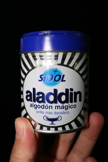Con eso vamos al primer paso: la limpieza para la posterior preparación de la vaina. Cada uno limpia como le parece, y yo lo hago hace ya bastantes años con Aladdin; lo compro en Mercadona y un bote dura media vida. En las fotos salgo con un guante de vinilo en la mano que toca el producto porque me jode mucho mancharme, pero no es corrosivo ni nada del estilo.