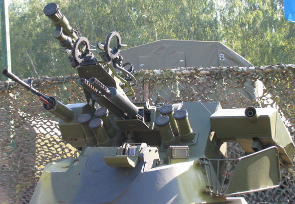 d) dos de 30 mm (Gsh-30K), una de 12,7 mm, un lanzagranadas de 30 mm y fos IGLA (modelo MT-LB-6M1B5)