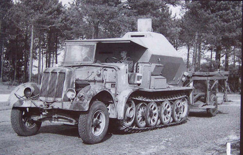 Y aparte, utilizaban otro vehículo semioruga el Sd.Kfz 8 de 12 toneladas junto con un remolque especial para el traslado del cohete completo. Os pongo la imagen que tengo en mis ficheros.
