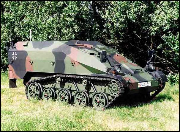 Esta es una nueva versión del popular vehículo ligero de cadenas Wiesel del ejercito alemán. Es el Wiesel 2 GRCP,o vehículo detector y manipulador de objetos peligrosos o IDS.