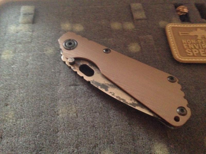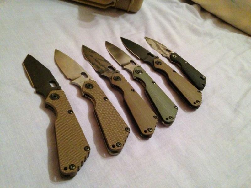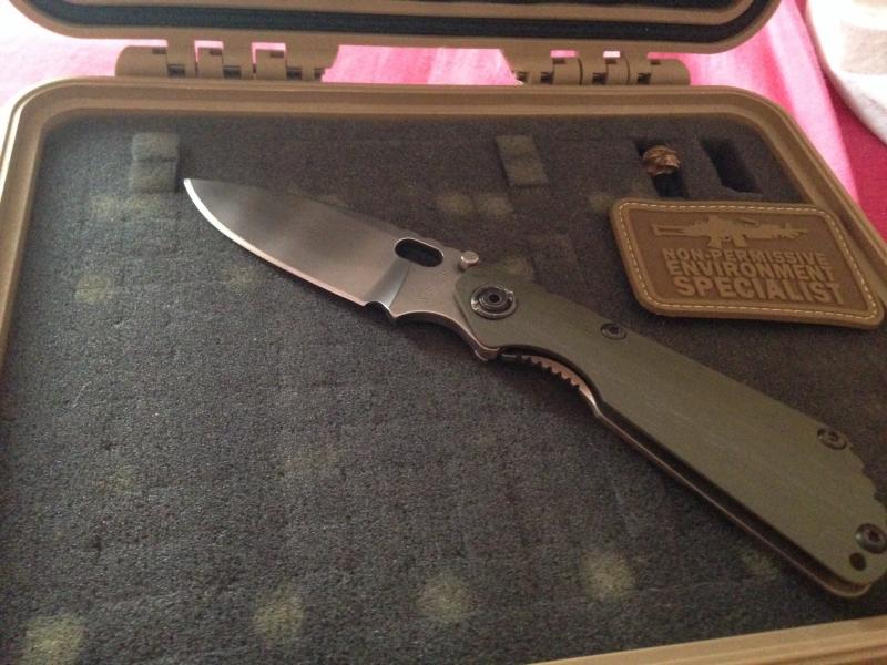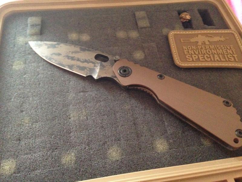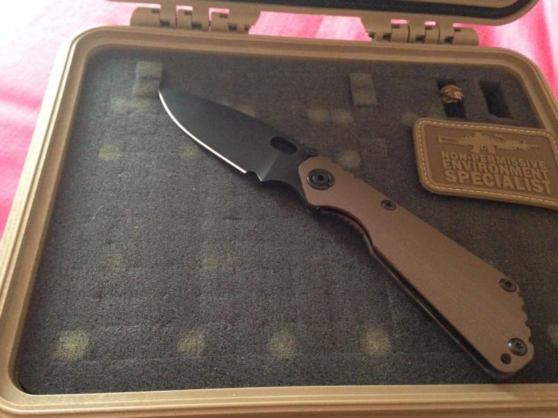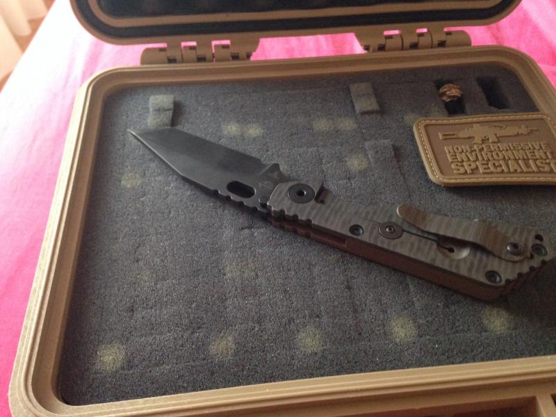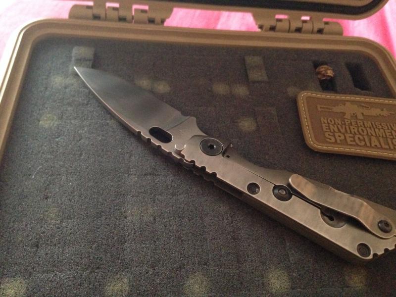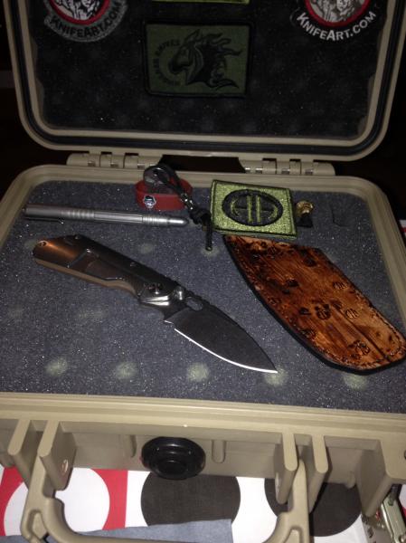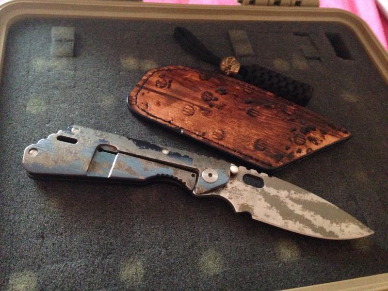 Yo conseguí esta sin funda ni skull pero con el tiempo localice esta funda de Gregg Everett que a pesar de no ser la original de este conjunto es bien chula. El skull de stalingear es una asignatura pendiente. La rabiza es de mi amigo Querosan y el skull dorado una edición especial 2006 de emerson.