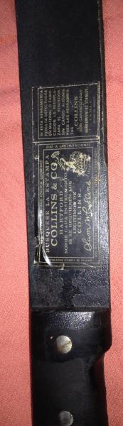 Machete COLLINS & CO, quizá lo mas curioso es que conserva la pegatina original, con los términos de la garantía.