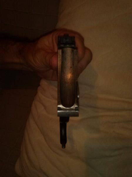 Detalle de la recámara con el cajón de mecanismos desmontado.